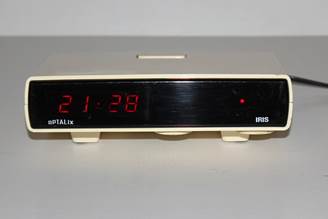Radio-réveil Iris blanc (N°126886) de 1979. Alim. 230V 50Hz, PO et GO. Platines X660 et X653B (commande réveil) |